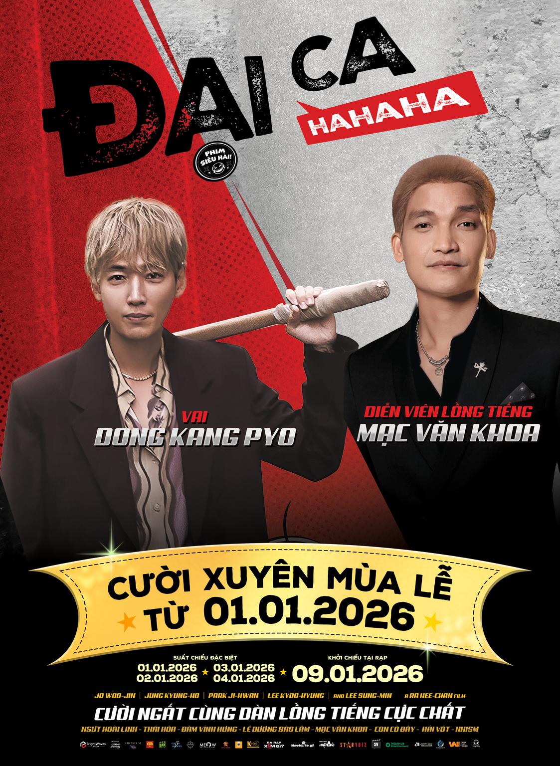 **ĐẠI CA HA HA HA** (tựa gốc: **BOSS**) có suất chiếu đặc biệt từ 01.01 đến 04.01.2026 và chính thức khởi chiếu từ ngày 09.01.2026. Tại Hàn Quốc, phim đạt hơn 2,43 triệu lượt xem, doanh thu toàn cầu 420 tỷ đồng, thống trị phòng vé dịp Chuseok 2025.