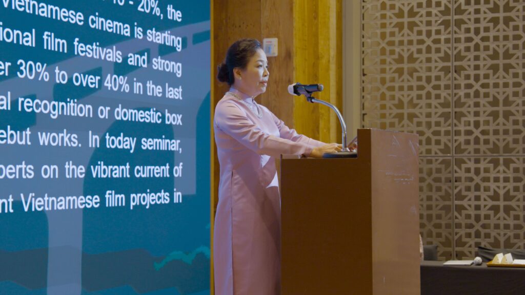 Bà Ngô Phương Lan, Chủ tịch VFDA, đã phát biểu nhấn mạnh sự phát triển vượt bậc về doanh thu và chất lượng của điện ảnh Việt Nam trong thập kỷ qua, đặc biệt nhờ sự đóng góp của các đạo diễn trẻ. VFDA đóng vai trò cầu nối quan trọng, hỗ trợ ngành thông qua các sáng kiến nổi bật như Bộ chỉ số Thu hút Đoàn phim (PAI) và Liên hoan phim Châu Á Đà Nẵng (DANAFF). Bà Ngô Phương Lan cũng kêu gọi các nhà làm phim quốc tế hãy đến Việt Nam để khám phá tiềm năng hợp tác.